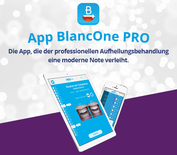 - Mit der BlancOne PRO App können Sie schnell und problemlos jeden Patienten eingeben, der sich für seine Zahnaufhellung an Ihre Praxis wendet, wobei auch Gewohnheiten notiert werden, die negative Einflüsse haben können (Rauchen und regelmäßiger Kaffee-/Teegenuss)