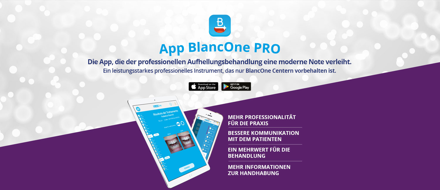 - Am Ende der Behandlung können Sie das Aufrechterhaltungsprogramm Xtra kombinieren und nach einem Informationsabgleich von Behandlung und Patientengewohnheiten schlägt Ihnen die App vor, wann eine Kontrollvisite erfolgen sollte. Die BlancOne PRO App wird dafür sorgen, dass der Patient zur periodischen Visite in Ihr Center eingeladen wird, indem sie automatisch eine Mail verschickt