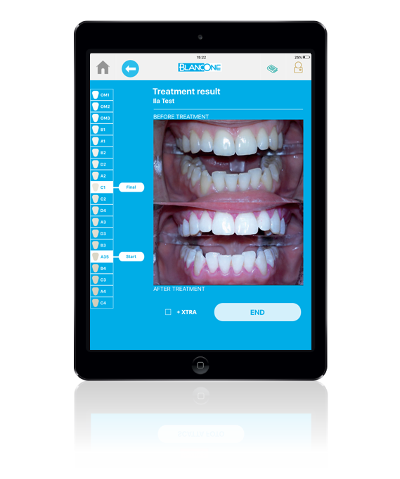 Once you have registered as a BlancOne centre, you will always keep in touch with your patients with to the BlancOne PRO App thanks to which you will be able to interact with your patients, showing them the improvements in the tone of white, create personalised treatment programmes, collect their feedback and promote your business.
