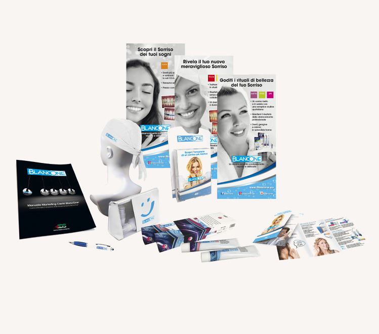 BlancOne is on your side also to promote your office and your treatments: register among our authorised centres. You will receive the Welcome Kit with information and marketing material to start promoting your whitening treatments immediately