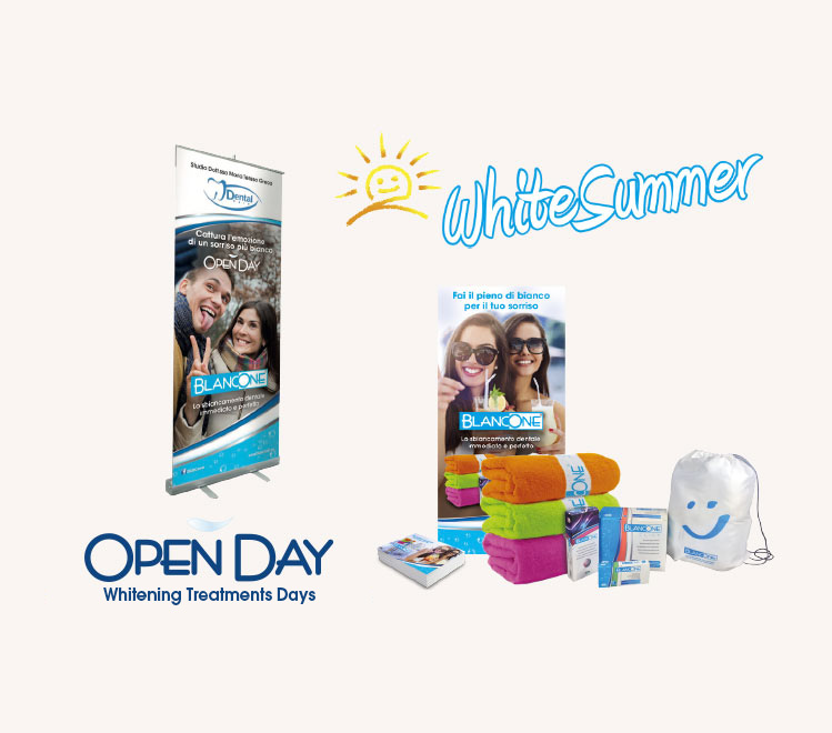 To emphasise your business, celebrate an occasion and introduce the innovative technology of your whitening treatments, all you have to do is call your BlancOne consultant and organise an Open Day! Furthermore, during the year, you’ll be able to choose whether to join the special promotions activated by BlancOne: more and more patients will call your centre!